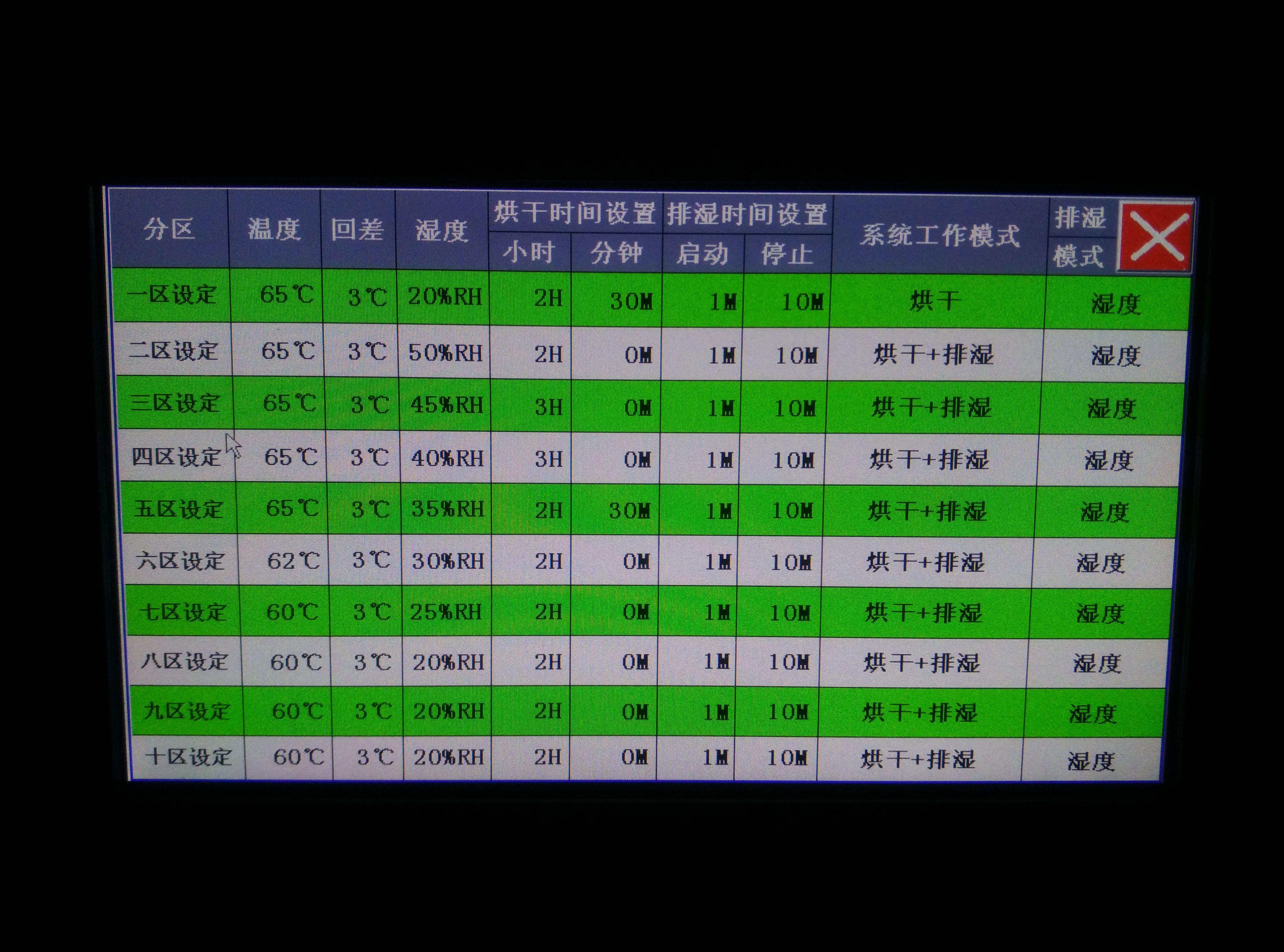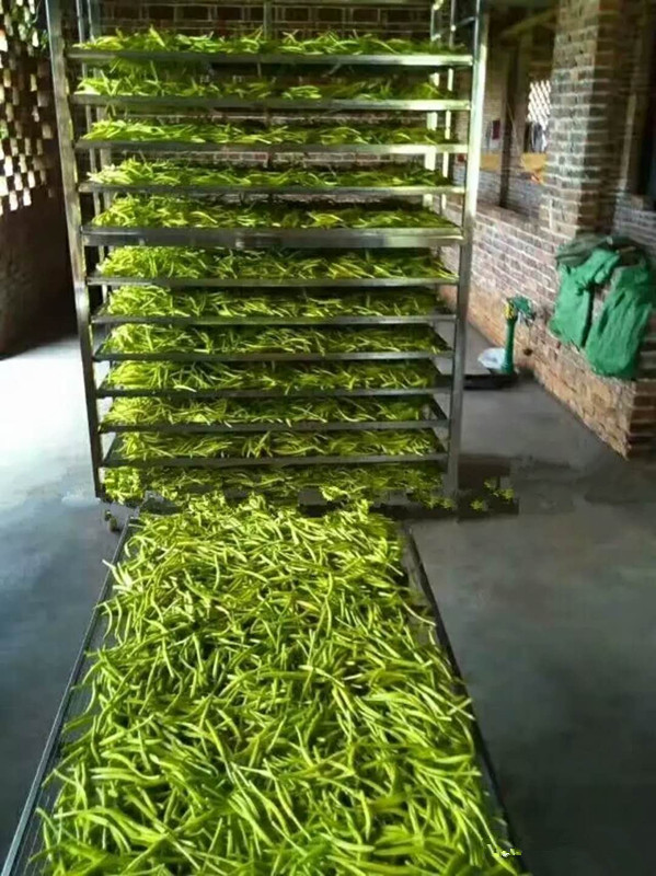 將擺放好黃花菜的物料車推入烘干房內(nèi),設定好烘干時段,溫度,排濕量,啟動設備進行烘干。